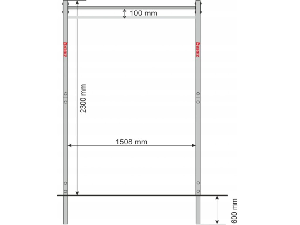 - výška tyče nad zemí: 2250 mm